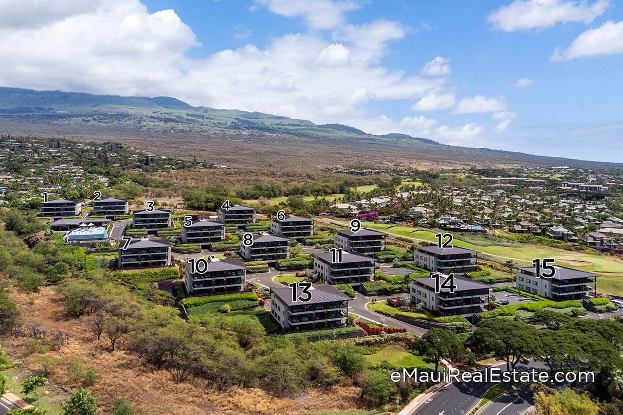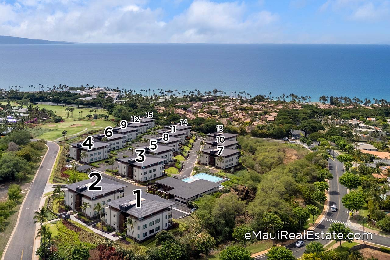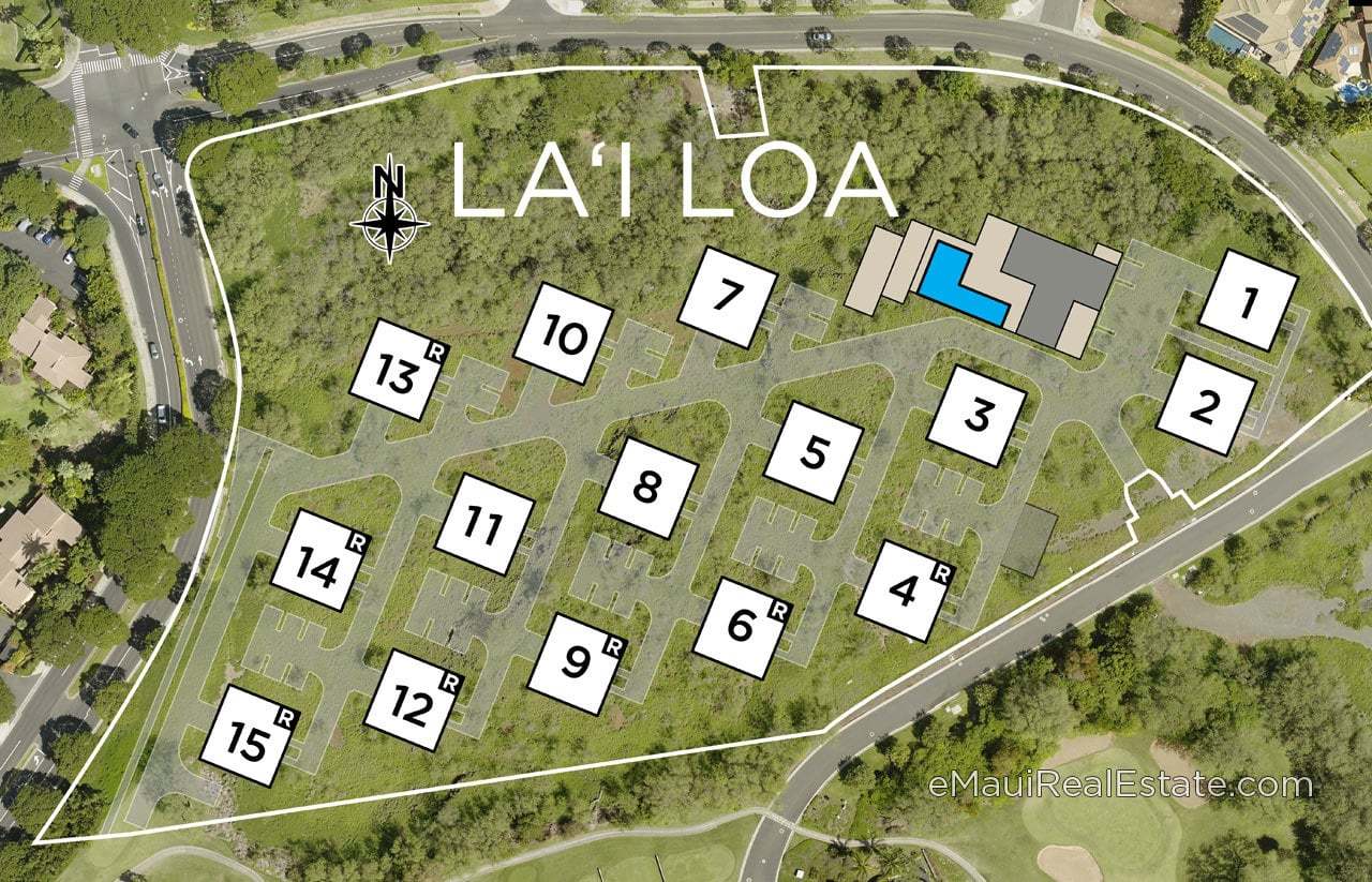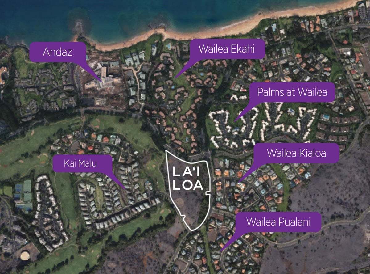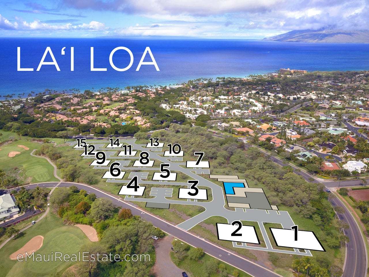 Wailea's newest community, Lai Loa, is located on a 12-acre parcel of land directly North of the established neighborhood of Kai Malu. Buildings 1 and 2 will be located at the highest elevations while Buildings 13, 14 and 15 will be down toward the bottom of the hill and located nearest to Wailea Alanui Drive.