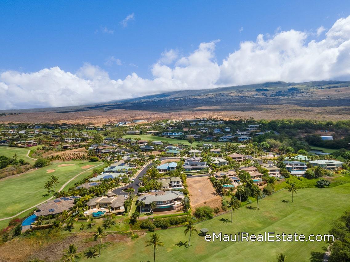 Wailea Golf Vistas has 48 home lots available on a plot of land that is about 17 acres. The neighborhood is almost completely surrounded by the beautiful Wailea Blue Golf Course (known by locals as the “Grand Lady of Wailea”) and is located above the Fairmont Kea Lani Resort. The entrance to the Wailea Golf Vistas can be found by taking the first left into the gate after driving up Kaukahi Road. The sizes of the lots range from 11,000 to about 18,000 square feet. The Vistas facing to the west and southwest offer the best views in the neighborhood.