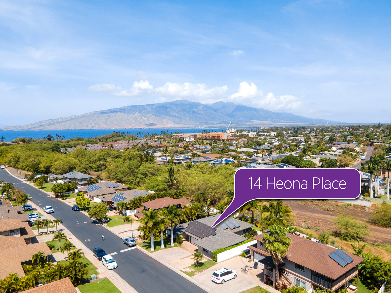 14 Heona Place is an immaculately maintained single level home and attached ohana located in the highly sought after community of Kenolio Makai. This hidden gem is one of only 18 exclusive residences sharing a private road in the heart of South Maui. The property is set up in 2 very distinct living spaces. Each with their own private fenced in yards, and dedicated off street parking. This property may be utilized as a successful rental home, multi-generational compound, or your personal full time Maui residence. From the moment you step foot onto 14 Heona, you will notice the pride of ownership in the 3 bedrooms and 2 baths of the primary residence. Edible landscaping includes avocados, tangerines, and limes. There are 20 seller-owned photovoltaic solar panels, central air conditioning, and a custom bar area featured in the great room. The home was recently repainted, and offers seamless indoor and outdoor living throughout. The private attached 480 sq ft. ohana has a comparable well kept exterior and interior finishes, and is sub-metered for electricity. This property offers an incredibly central convenience and a plethora of Maui lifestyle amenities. Nearby are 4 championship golf courses, tennis and pickleball facilities, windsurfing and kite-boarding at Kalepolepo Beach Park; plus great restaurants and shopping. The Kahului Airport, the Central Maui business district, and the Maui Arts and Cultural Center are only a short 20 minutes away. Don't miss this unique opportunity to own this charming single level home in the heart of South Maui.