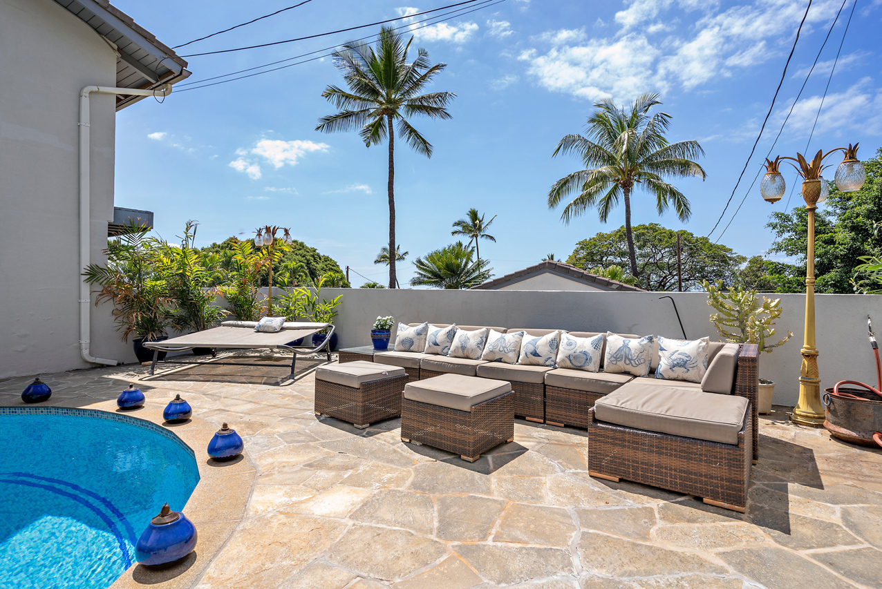 Welcome to Hale Hookipa, a tranquil retreat in Maui Meadows with a remodeled two-story main house, custom salt water pool and detached luxury cottage on a half-acre of beautifully maintained land. The residence is set up in 3 distinct living spaces. It is equipped to perform as a successful rental property, corporate getaway, or your personal vacation residence. This is literally the home for everyone, and the property has endless possibilities. You must see it in person to fully appreciate the quality. Enjoy epic ocean views from both floors of the exquisite 4500 sq. ft. primary residence which has 7 bedrooms and 5 full bathrooms. Home was completely upgraded from top to bottom with premium sustainable and natural materials including limestone and travertine, exquisite finishes and elegant decor that will inspire you. The layout of interiors and outside spaces were masterfully planned to create multiple spaces for entertaining and relaxation. Spacious, 50-foot covered lanais on both levels are the perfect spot to relax and savor panoramic ocean views, enchanting sunset skies, and sweeping vistas of the West Maui Mountains and the outer islands. Vaulted ceilings on the second floor with multiple skylights create an abundance of natural light and enhance the open, bright feeling of the home. The master suite feels like its own secluded oasis and has a remarkable bath-tub where you can soak while marveling at a picture-perfect ocean view. The family room/media area is the perfect place to gather friends and family for entertaining. Located on a quiet cul-de-sac in Maui Meadows, this home has been constantly upgraded during the present owner’s stewardship. The pride of ownership featured throughout is evident and unparalleled. Call today for a private showing!
