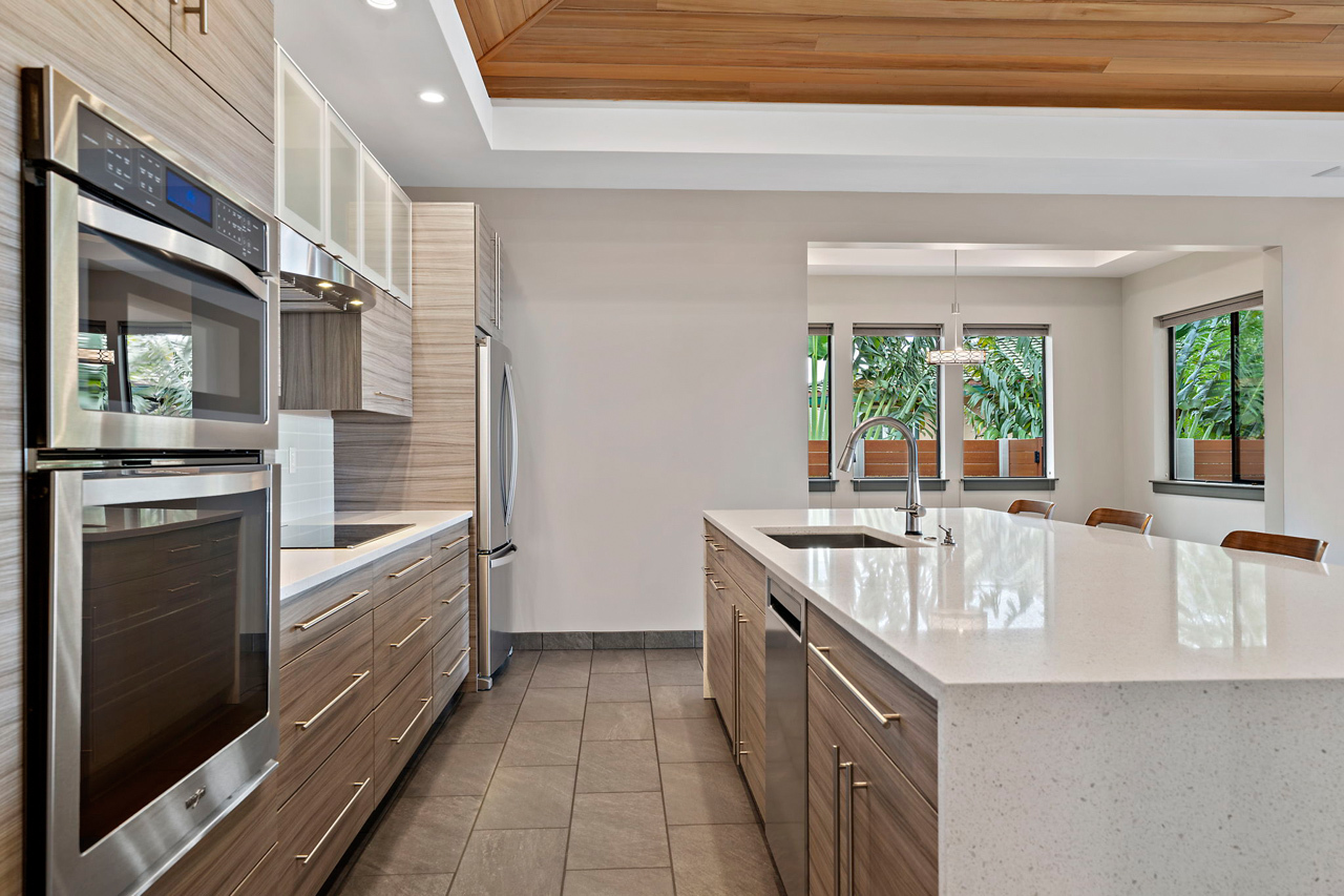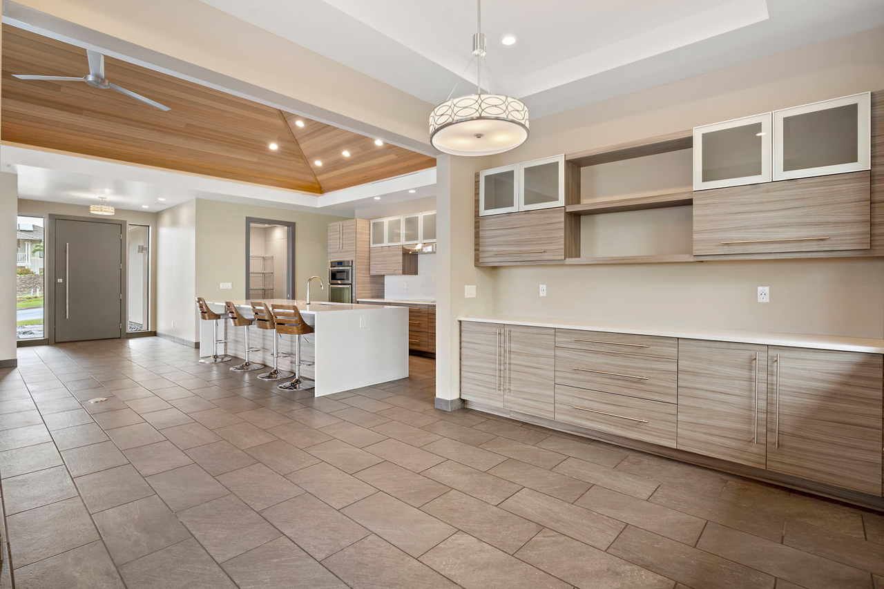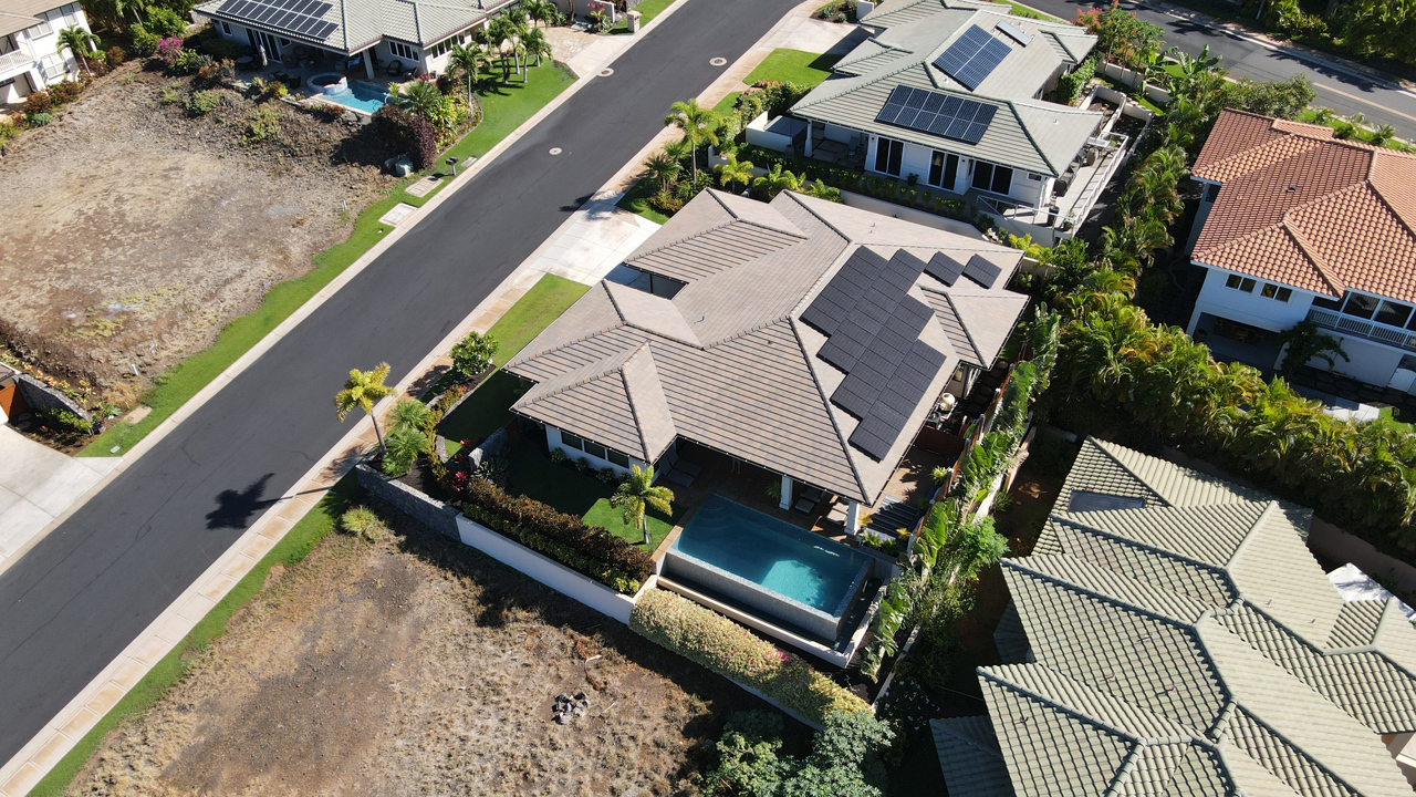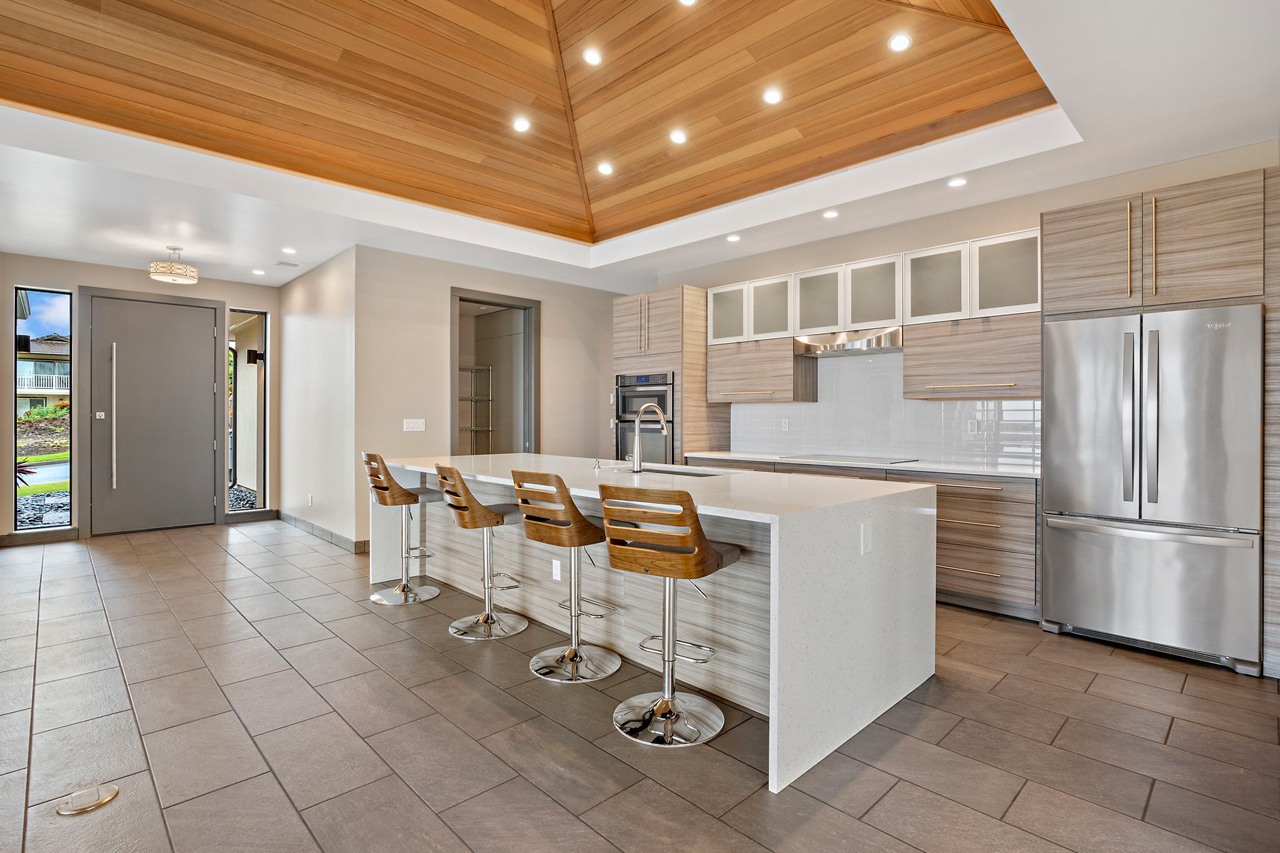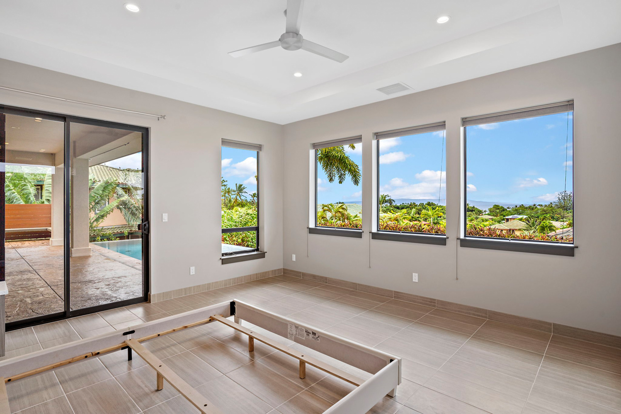 Custom built home offered in the heart of Kilohana Waena. Perched near the very top of the community, this single level retreat offers the perfect contemporary design with gorgeous ocean views from the pool area out towards the Central Pacific. Such a finely appointed residence and extremely versatile single level floor plan. Located walking distance to the world-renowned Keawakapu Beach, and just minutes away from all the Wailea Resort amenities. When you enter through the front door, you will feel a sense of tranquility and immediately notice the builder’s attention to detail. This home features a dream kitchen with spacious center island, sleek quartz counter tops, high-end modern cabinetry, and energy efficient stainless steel appliances. The manicured lawn and tropical landscaping add to the sense of privacy and serenity. This indoor/outdoor living arrangement makes this residence the perfect place for entertaining your friends and family. An absolutely stunning, modern home with a fully finished garage. There is also a photovoltaic system installed which is fully owned to help support your sustainable Maui lifestyle. Central Air conditioning and super efficient LED warm color lighting to add to the custom ambiance.