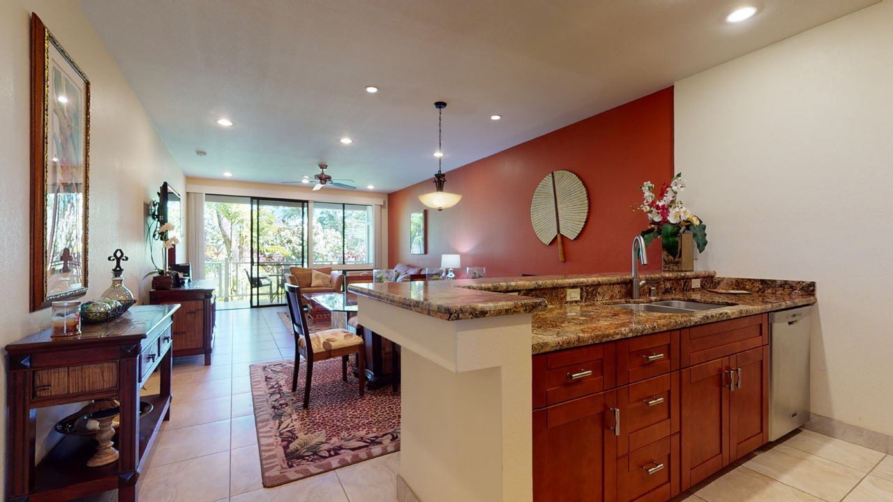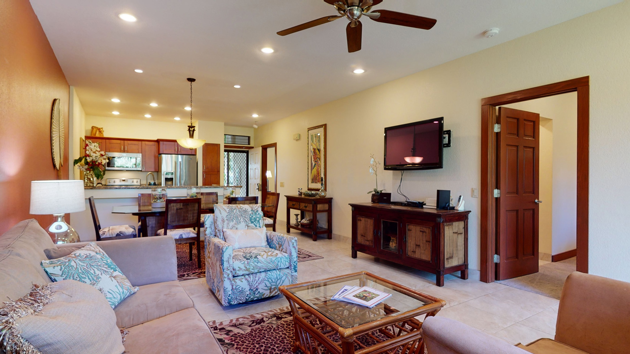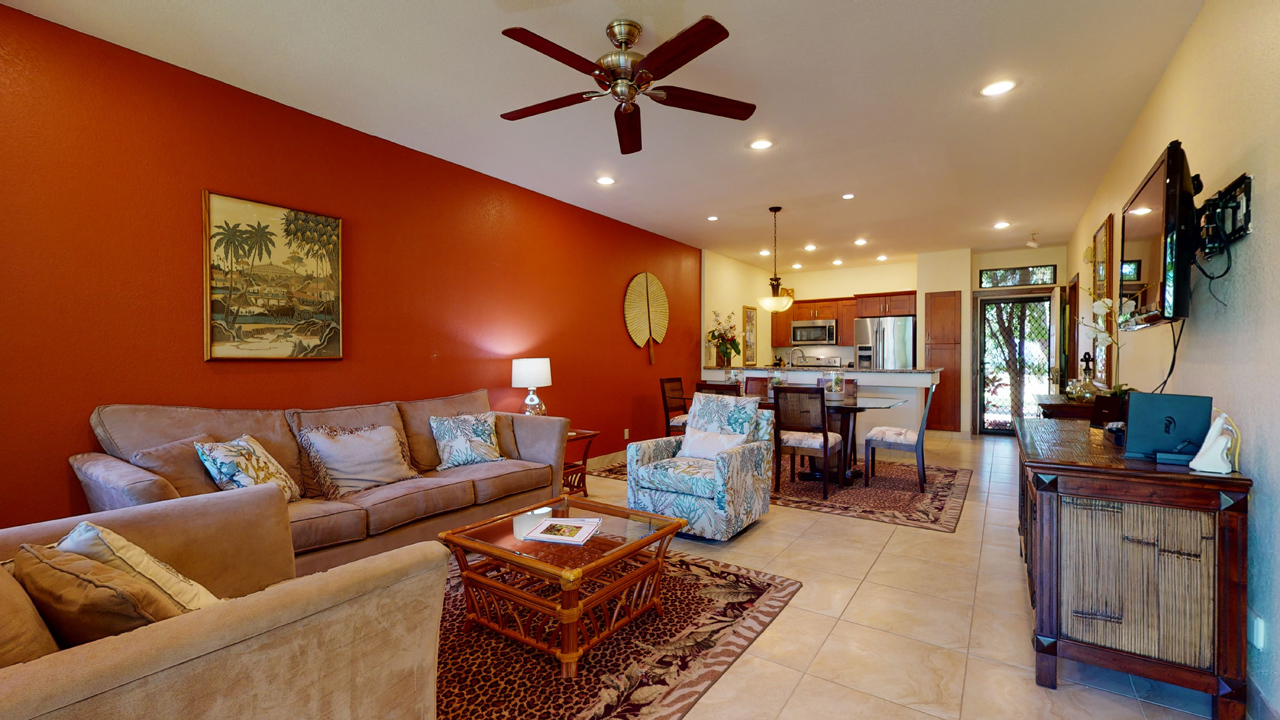 The one you’ve been waiting for at Grand Champions: Unit #185! Rarely do these inner courtyard locations become available in the community. From top to bottom, this condo has so much to offer. With beautiful views of one of the 2 pools at Grand Champions, this home is conveniently located in the center of the complex. The covered lanai looks East and offers a ton of privacy. You can enjoy it as your Maui vacation home, or rent it to visitors on a short term basis. The possibilities are endless. However you choose to utilize the space, you will enjoy the masterful owner upgrades and unique position of this condo. Recent renovations include a completely remodeled kitchen, high energy-efficient stainless steel appliances, tropical furnishings, and granite countertops. Bathrooms are appointed with custom showers and contemporary fixtures. Additional upgrades include tile flooring throughout the great room and newer carpets in both of the bedrooms. There is air conditioning featured in the condo for those warmer Maui days. Grand Champions Wailea features 2 pools and wonderful mature landscaping throughout the complex. Nearby are all of Wailea's resort amenities, including first-class restaurants, championship golf courses, tennis facilities, elite shopping opportunities, and miles of white sand beaches and ocean recreation. Finely appointed and being offered fully furnished by the sellers.