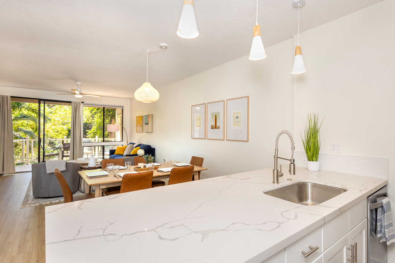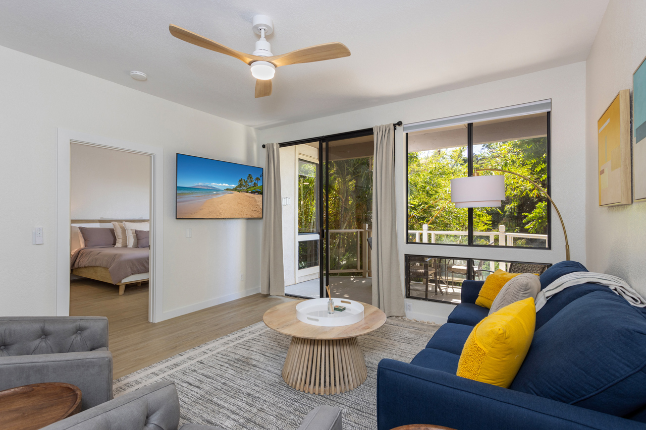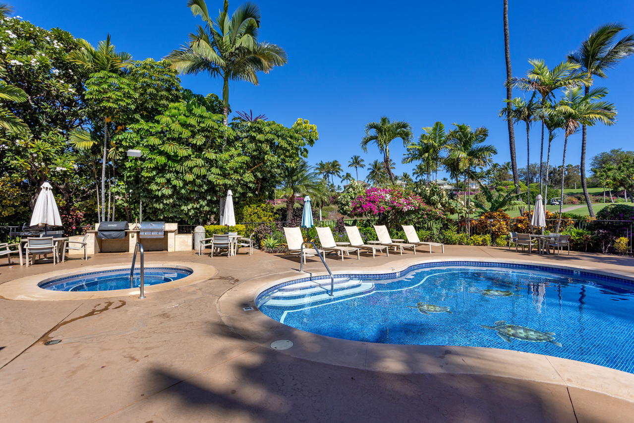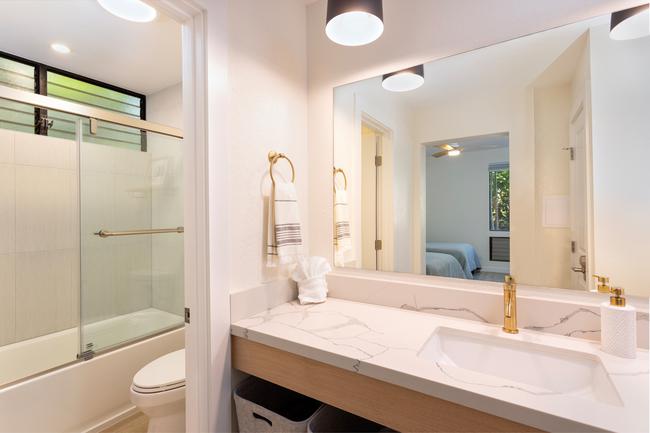 Grand Champions 51 is the vacation home away from home that truly checks all your boxes. Fully renovated and tastefully updated in 2023, this spacious 2 bedroom end-unit has ocean views from the lanai as well as the primary suite while offering privacy and tranquility among the lush tropical landscaping. Immaculate condition and beautifully appointed throughout with new stylish modern decor, luxury vinyl-plank flooring, light fixtures, and ceiling fans. Kitchen has new stainless steel appliances, quartz counters, resurfaced cabinets and custom tile backsplash. Comfort and hospitality is evident with every detail at Grand Champions 51 which has 1,056 square feet of living area along with a 125 sqft lanai for relaxing outdoor dining and sunset views. For added convenience, your assigned parking spot is right in front of the walkway leading to the entrance of your unit.