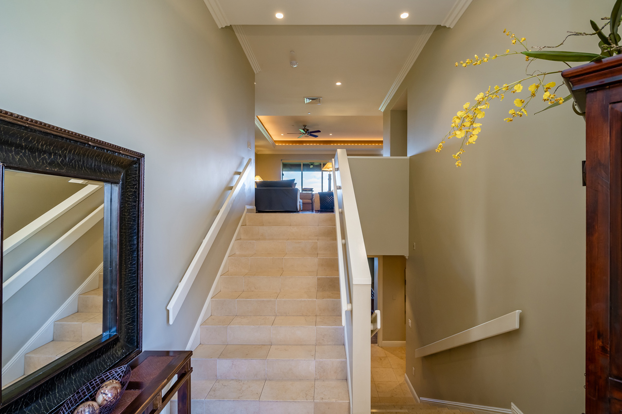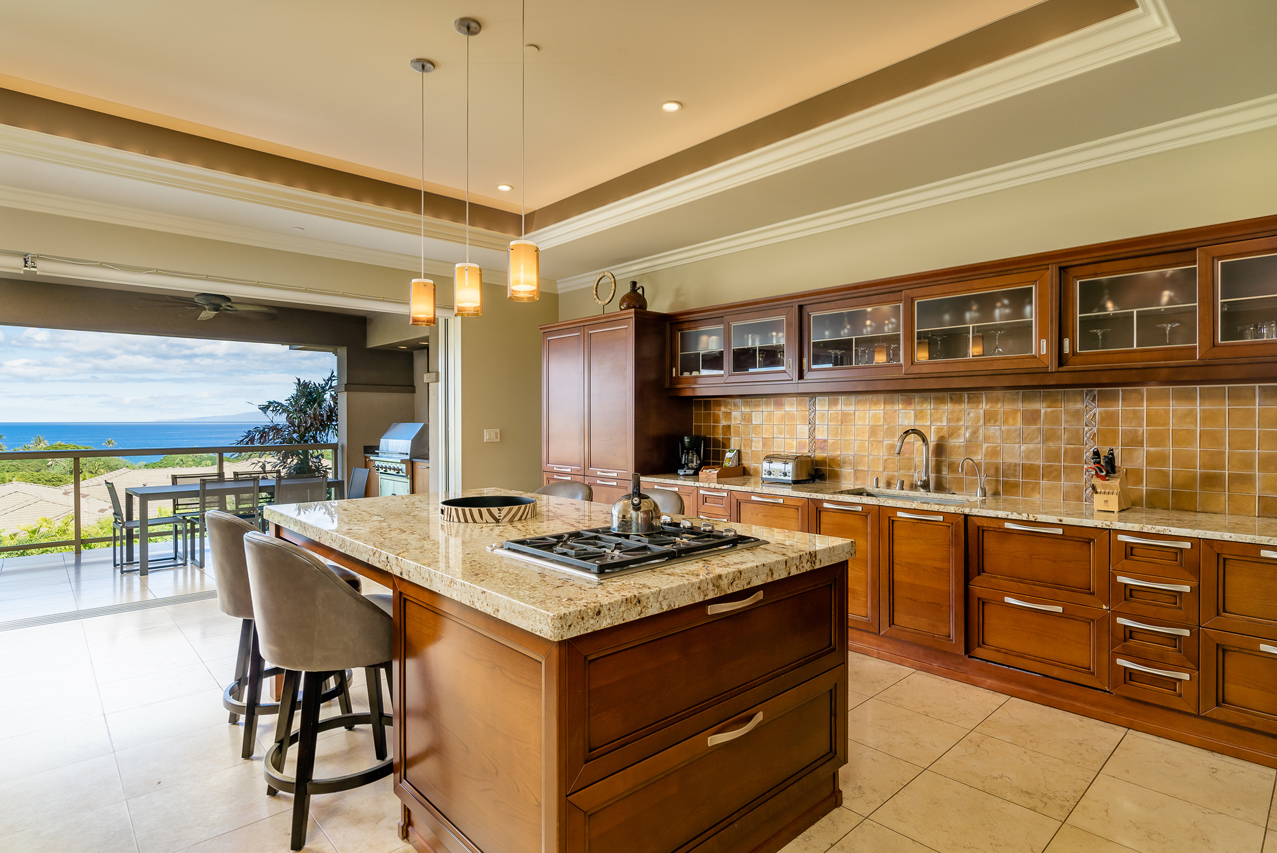 Extraordinary opportunity to own within the heart of Wailea, Ho’olei Resort Villa 57-5 offers panoramic ocean views and a captivating 3 bedroom 3.5 bath open floor plan located within a short walk to premier Wailea ocean beachfront. Relax and enjoy the abundance of amenities that await the most discerning buyer. Casual elegance embraces this well designed villa with the ease of indoor/outdoor living. A spacious kitchen well designed for entertaining with top of the line Wolf appliances, Sub Zero double refrigerators and built in Wolf BBQ on the covered lanai. Three bedrooms provide all ensuite features and plush designer furnishings. Laundry room, private elevator, storage closets, one car attached garage and a deeded carport with storage are a welcome convenience. Sellers are offering the Villa 57-5 turn-key for move-in ease. Ho’olei is a very special community offering 24 hr security, privacy gated with lush landscaping, tropical pool with waterfalls, fitness facility and concierge services. Ho’olei is a hotel zoned property, this home has been professionally marketed through the on-site Ho’olei at Grand Wailea Rental Management Company and is in pristine condition. The location of Villa 57-5 is ideal offering nearby world class resort amenities including the Shops at Wailea, Maui’s incredible beaches, first class restaurants, golf courses and miles of ocean recreation.