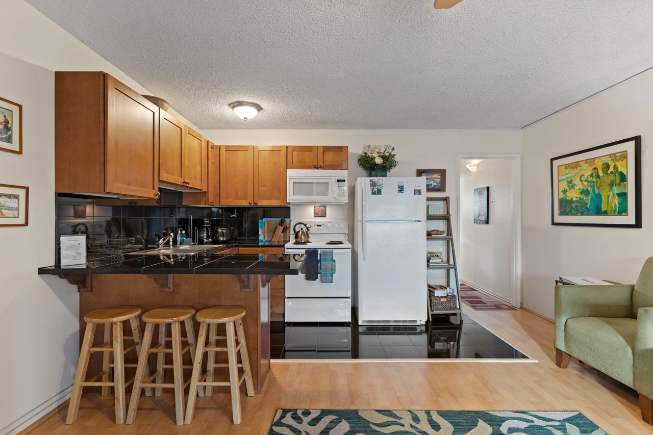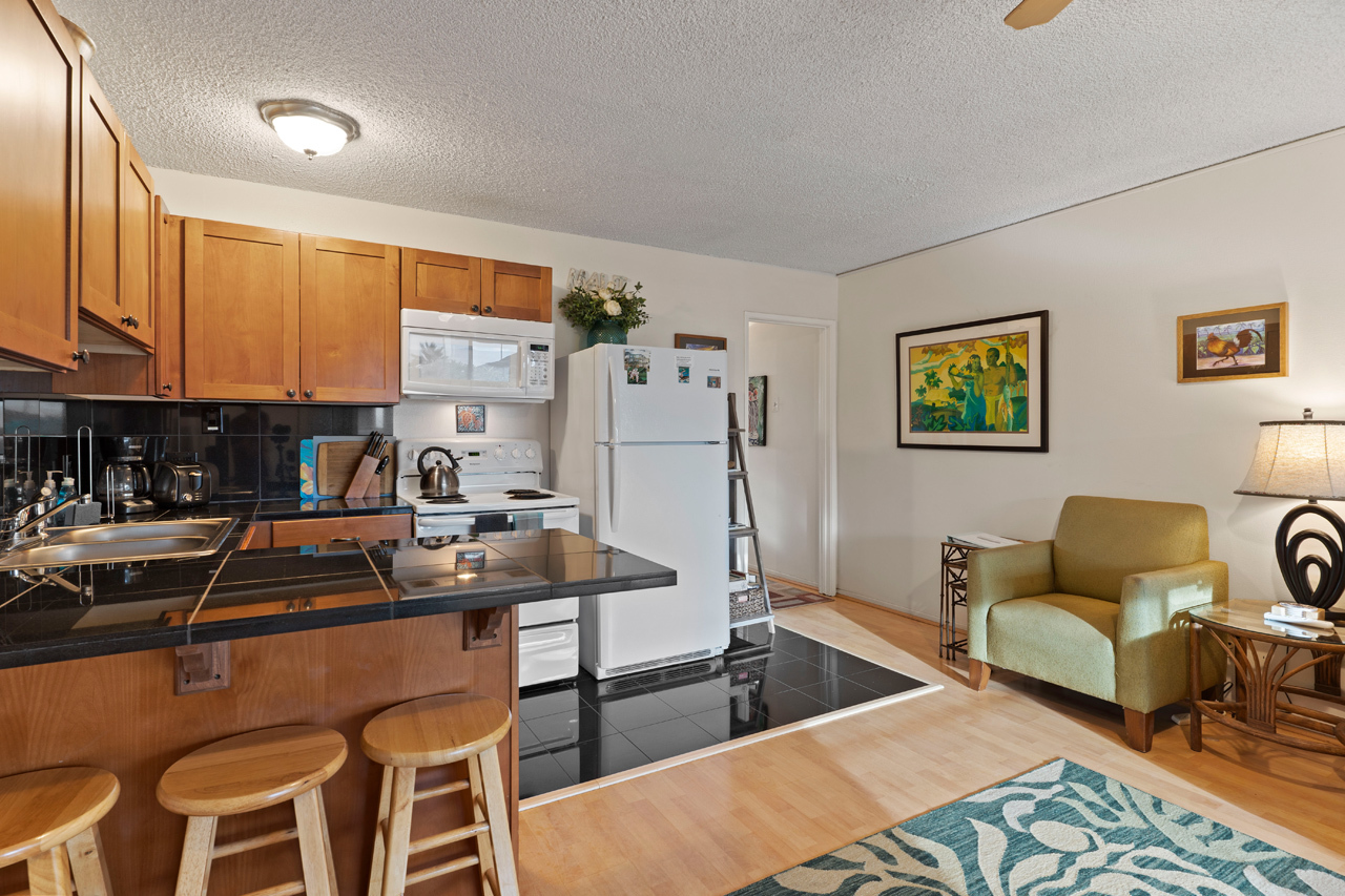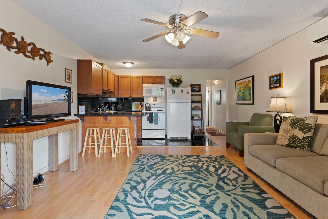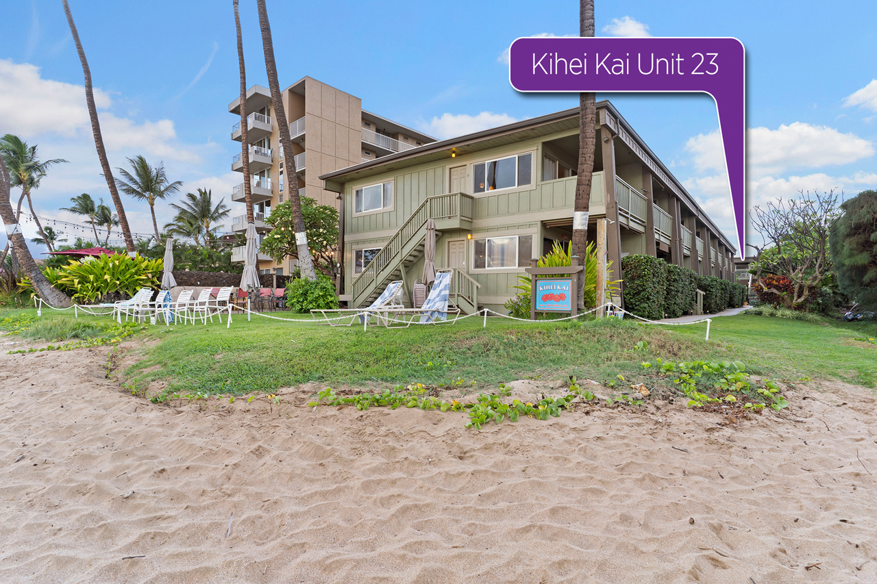 This Maui beachfront vacation condo is ready for you! Enjoy ocean views, whale watching and beautiful sunsets from your private lanai. When you are ready for fun in the sun, Kihei Kai 23 is just steps away from all the best ocean activities on Sugar Beach. Recently remodeled in 2016 and 2022, the upgrades include new ultra quiet split AC in the living room, granite tile countertops in the kitchen, all wood construction cabinets and remodeled shower with new fixtures. This successful vacation rental property is being sold completely furnished. Kihei Kai is composed of only 24 low rise condominiums with a boutique feel that will transport you back to old Hawaii.