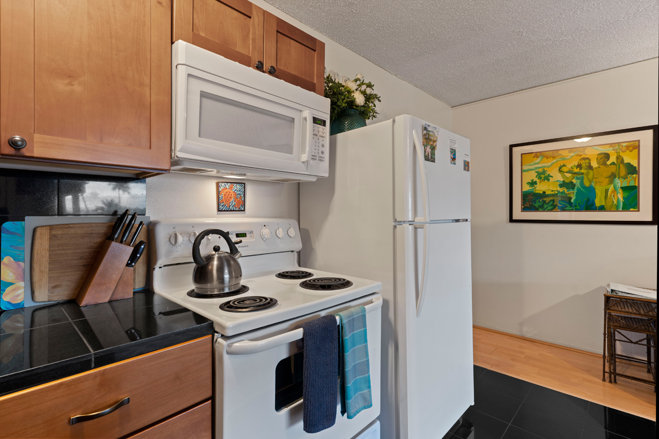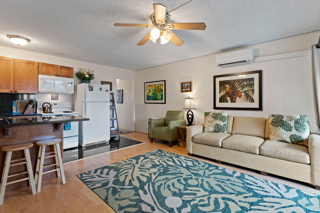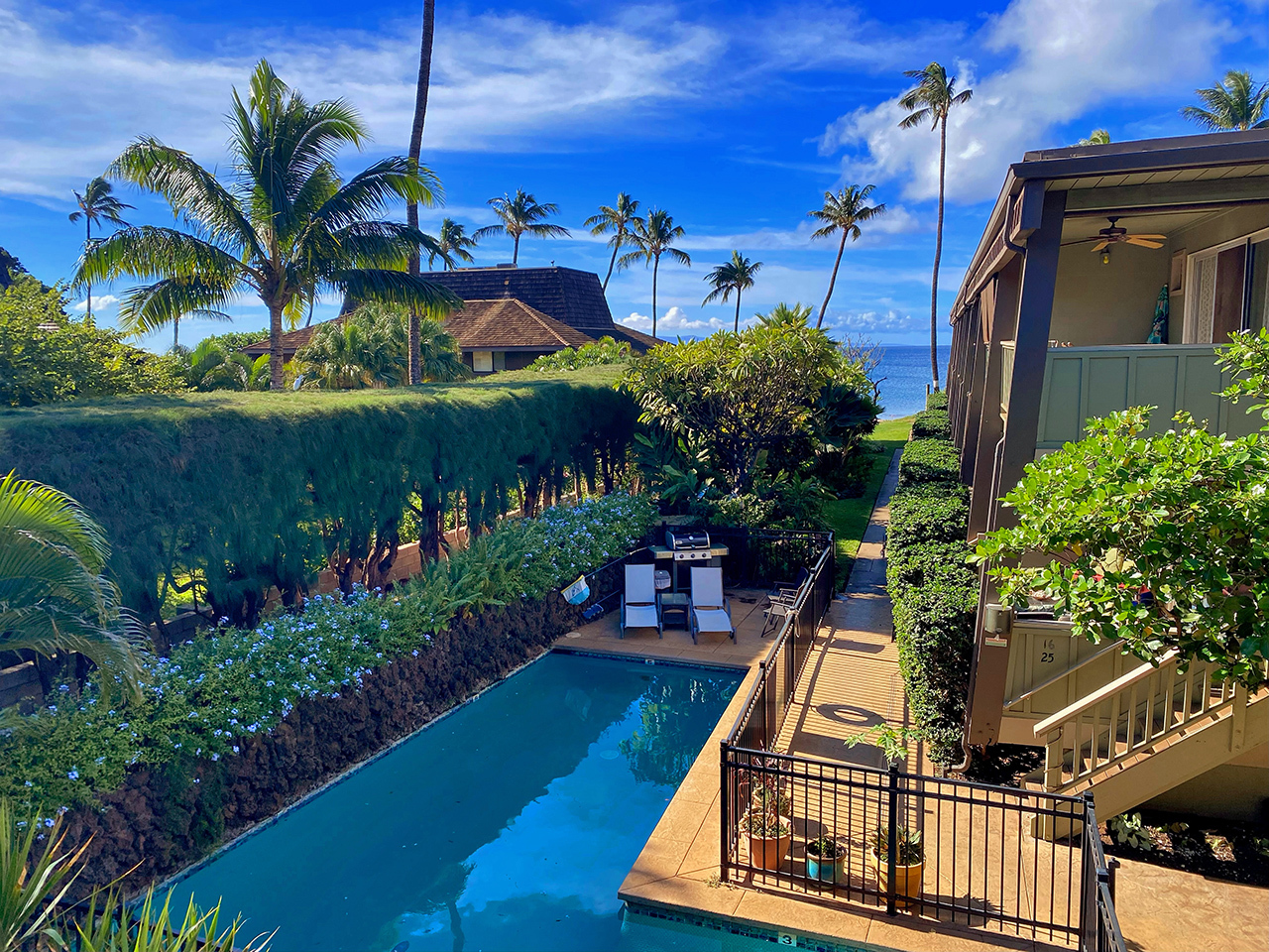 This Maui beachfront vacation condo is ready for you! Enjoy ocean views, whale watching and beautiful sunsets from your private lanai. When you are ready for fun in the sun, Kihei Kai 23 is just steps away from all the best ocean activities on Sugar Beach. Recently remodeled in 2016 and 2022, the upgrades include new ultra quiet split AC in the living room, granite tile countertops in the kitchen, all wood construction cabinets and remodeled shower with new fixtures. This successful vacation rental property is being sold completely furnished. Kihei Kai is composed of only 24 low rise condominiums with a boutique feel that will transport you back to old Hawaii.